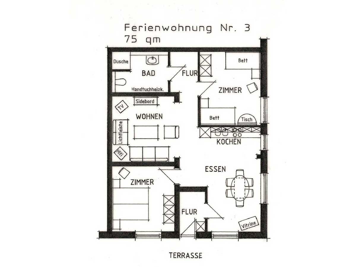 Auf den Grundrissen der Ferienwohnungen können Sie sich schon einmal mit der Raumaufteilung vertraut machen.
